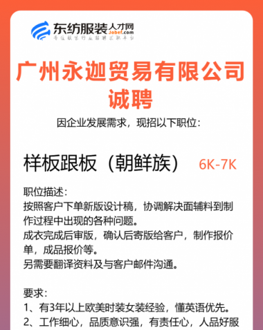 职位:纸样师/打版师/杂工/普工/川田模板工/跟单文员/跟单助理/生产助理/文员