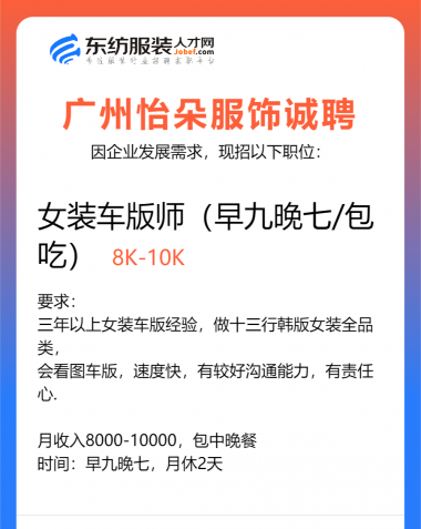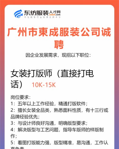 职位:女装设计师/纸样师/打版师/跟单文员/服装设计师/首席设计师/主设计师/设计总监/生产跟单
