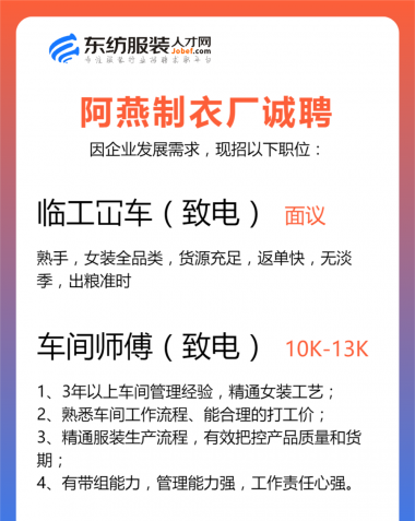 职位:生产厂长/主管/裁床/生产助理/文员/尾部主管/车间主管/指导工