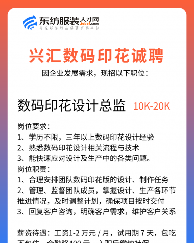 职位:数码印花设计总监/人事专员/办公室文员/行政专员/助理/行政文员