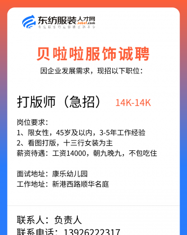 地址:新港西路顺华名庭/面试地址:康乐幼儿园