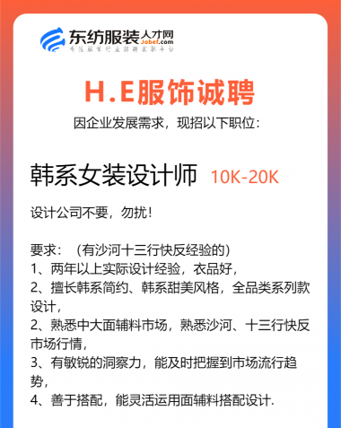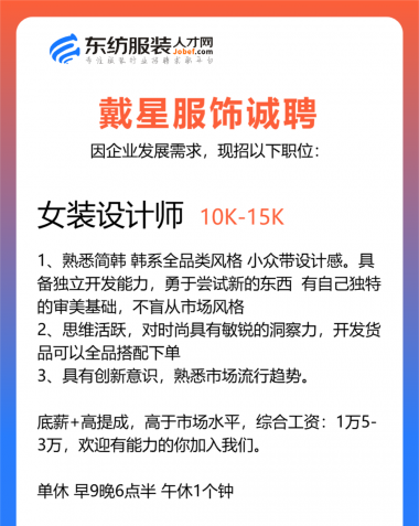 职位:女装设计师/设计总监/主设计师/首席设计师/服装设计师