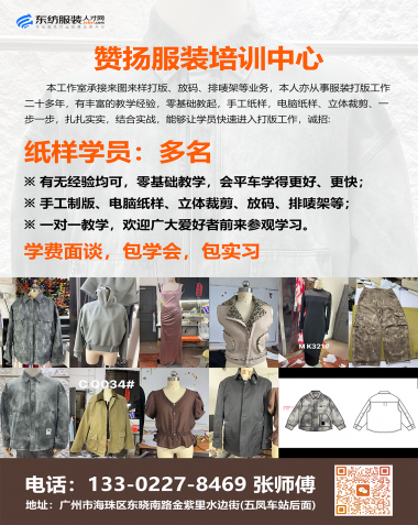 职位:纸样学员/打版学徒/纸样助理/学徒//四车/平车/车位/车工/五线/四线/设计助理/服装设计师