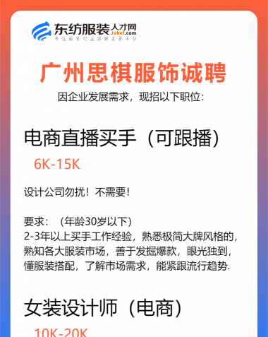 职位:/女装设计师/主设计师/服装设计师/时尚买手/助播/副播/场控/中控/电商主播/
