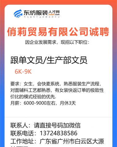 职位:纸样师/打版师/收发/打包/发货/仓库专员/车版师/样衣工/车版衣/运营助理/助播/副播/场控/中控/客服专员/电商客服