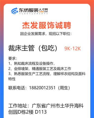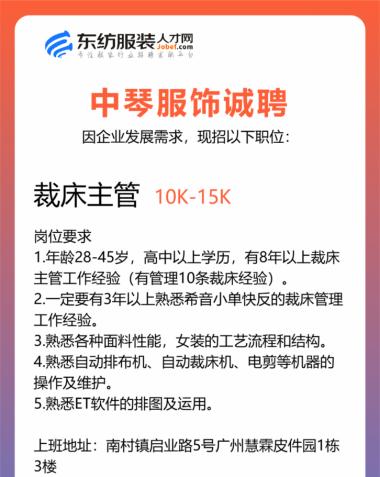 职位:电商运营经理/总监/纸样师/打版师//杂工/平车/收发/车间组长/车间主管/生产厂长/主管