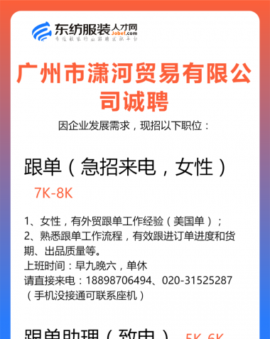职位:生产跟单/跟单助理/跟单文员/纸样师/打版师/外贸跟单/办公室文员