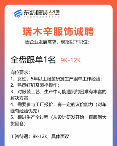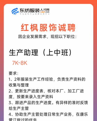 职位:生产跟单/跟单助理/跟单文员/生产助理/文员/车版师/样衣工/车版衣
