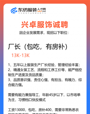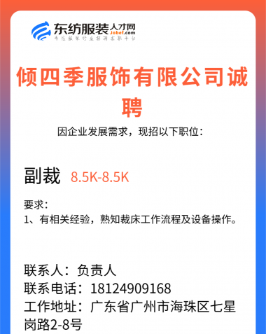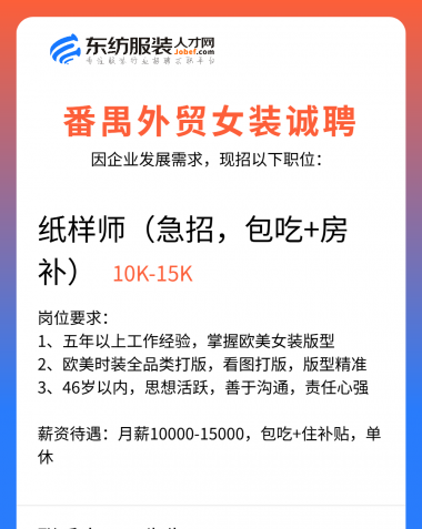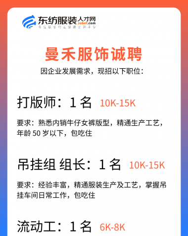 职位:纸样师/打版师/车间主管/车间组长/指导工/外发主管/采购/采购主管/采购助理/电商运营
