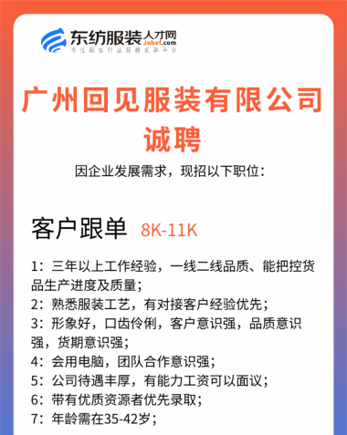 职位:营业员/销售员/开单文员/收货/拿货专员/面料检验/验布员/库管员/销售/业务员/市场小弟/仓库主管/生产跟单/跟单文员