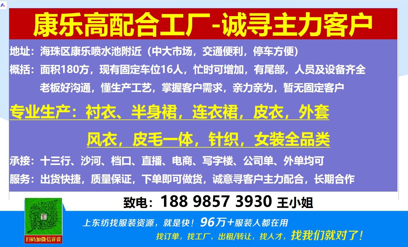地址:番禺区南村镇塘步东村星佑工业园首栋A栋103-鑫欣服饰