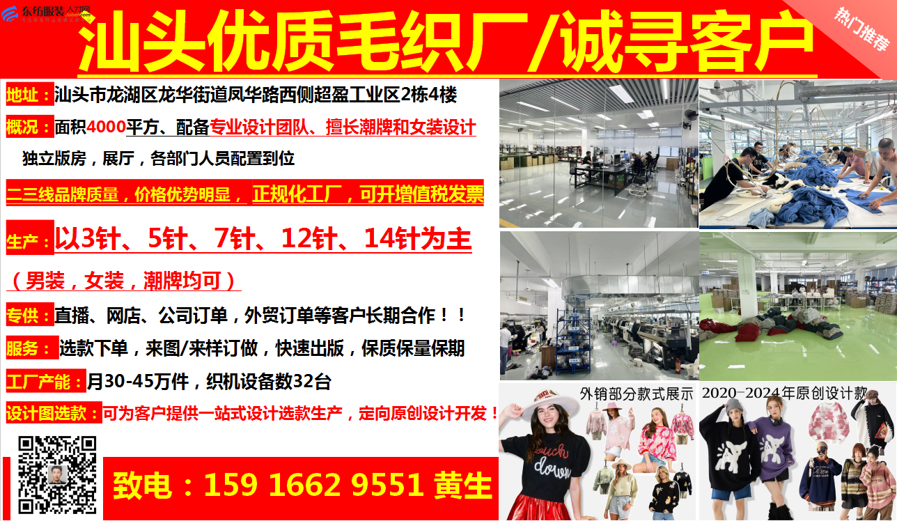 职位:汕头优质毛织厂-诚寻客户/原创设计开发