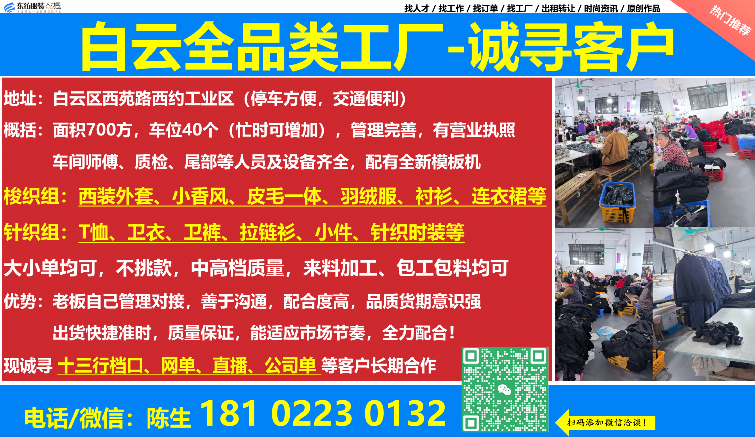 职位:白云全品类工厂-诚寻主力客户