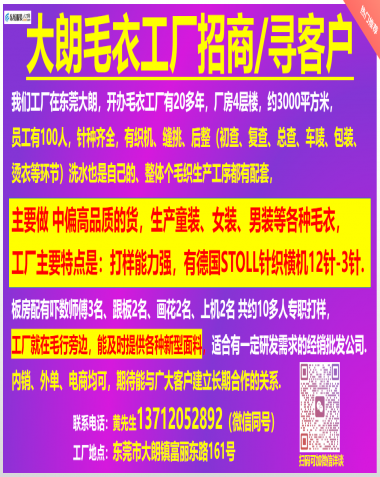 类型:工厂/东莞大朗毛衣工厂招商/寻客户