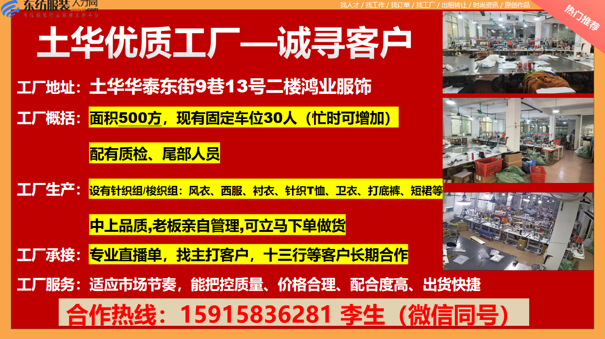企业合作-加工厂订单,服装订单,厂房出租转让,服装加工厂,工厂订单,外贸服装厂订单-东纺服装人才网