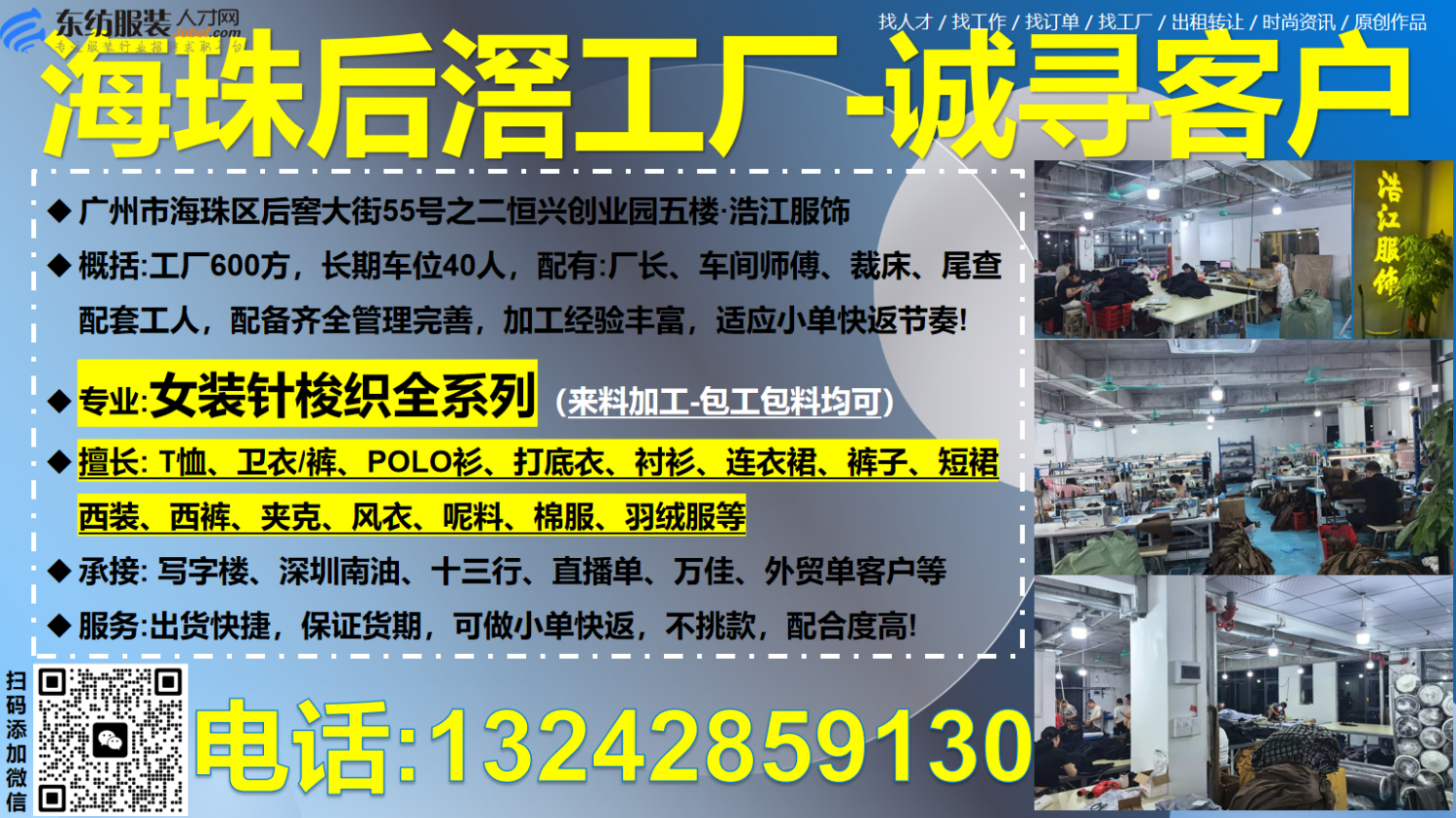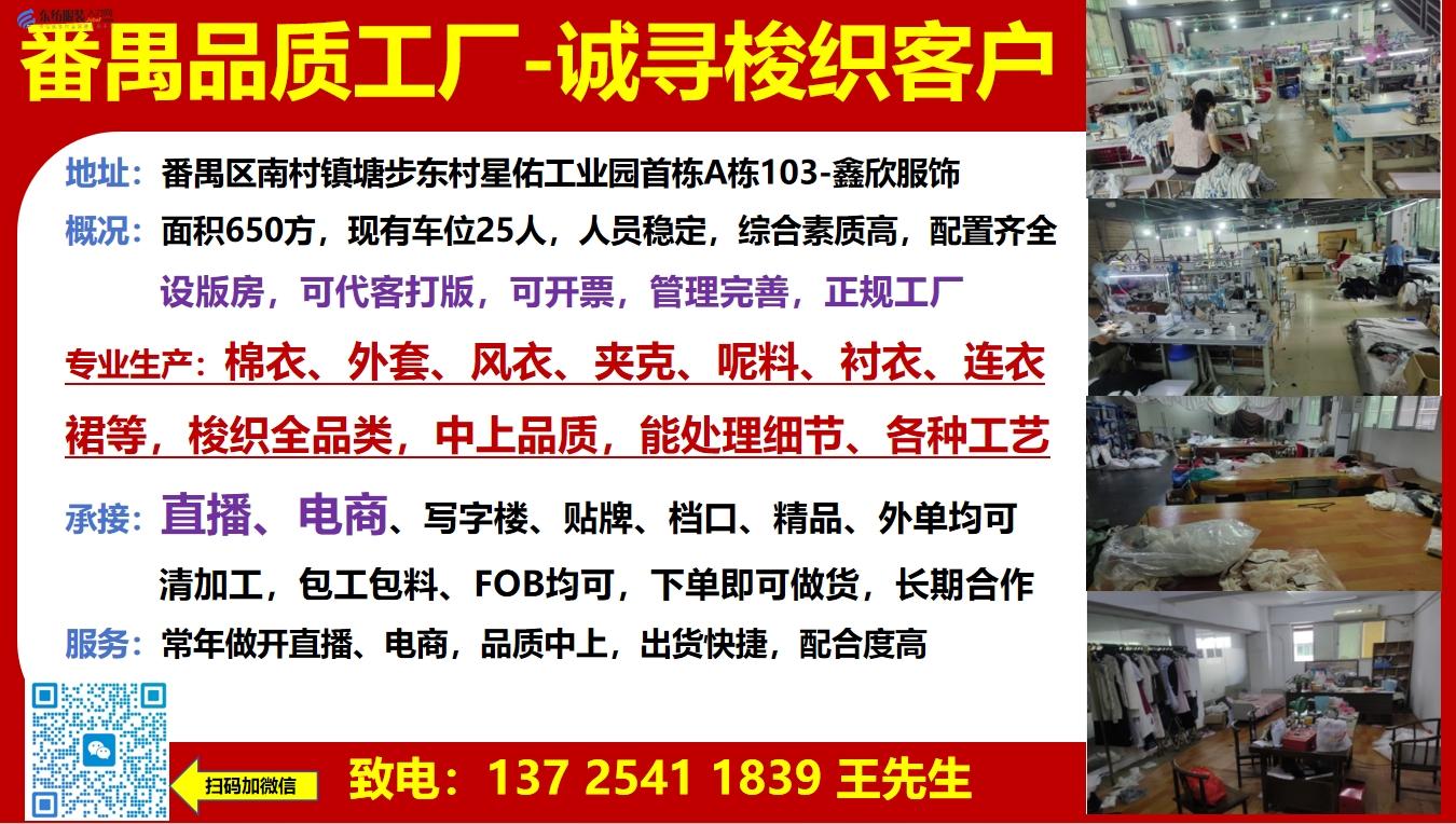 地址:番禺区南村镇塘步东村星佑工业园首栋A栋103-鑫欣服饰