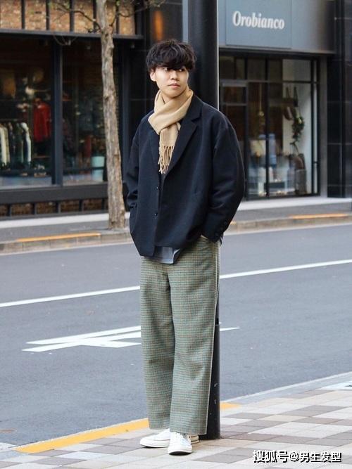 相比于衬衫的潮流青年感,休闲西装搭配纯色T恤更有邻家男孩的感觉。内搭驼色的T恤特别亮眼,走在街上回头率妥妥的,和黑色的外衣也是一种经典配色穿搭,在冬天这个季节,多了一份温暖感。年轻男孩子,就应该这样大胆地选择配色,否则还该怎么年轻?