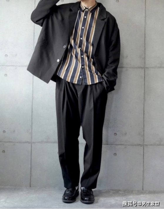 黑色和棕色相间的条纹衬衫对于男孩子来说很有时尚感,相比于纯白色的衬衫潮流多了,而且明显地少了油腻大叔的感觉。为了保持休闲感,小编建议下半身可以选择版型比较宽松的裤子,这样搭配起来不会太正式,反而多了时髦青年的感觉!