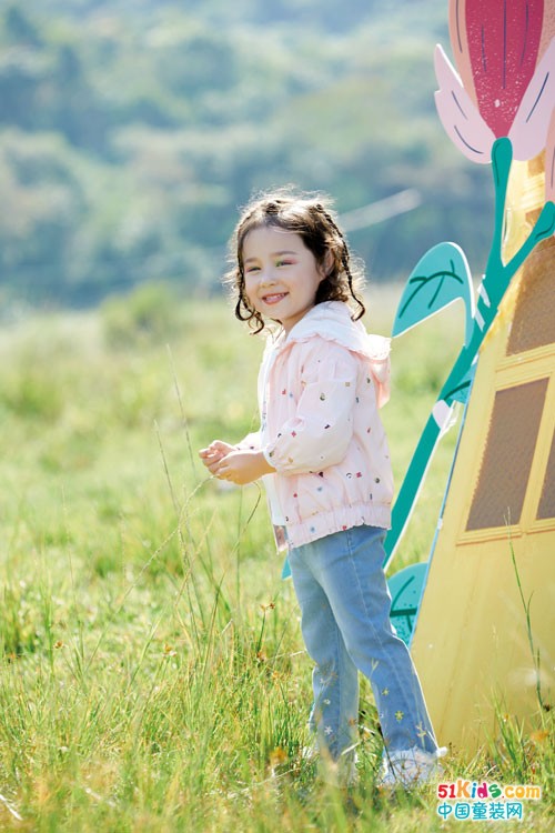 我可以穿上保暖甜美的铅笔俱乐部童装,即使风儿吹来了,我也不感到寒冷,因为这款粉色小外套螺纹下摆和袖口,抵御风的侵袭,搭配上厚实的水墨蓝牛仔裤,这个形象就是春天里可爱的小天使。