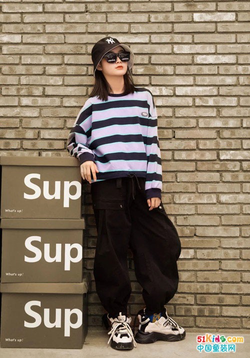 黑白色条纹长袖T恤,柔软的亲肤感,简约色彩和款式,时尚新鲜感,没有冬日里的臃肿,搭配时下流行的黑色阔版裤,点缀黑色印花渔夫帽,高品质休闲皮鞋,成长中的少女清新潮酷范魅力吸睛。