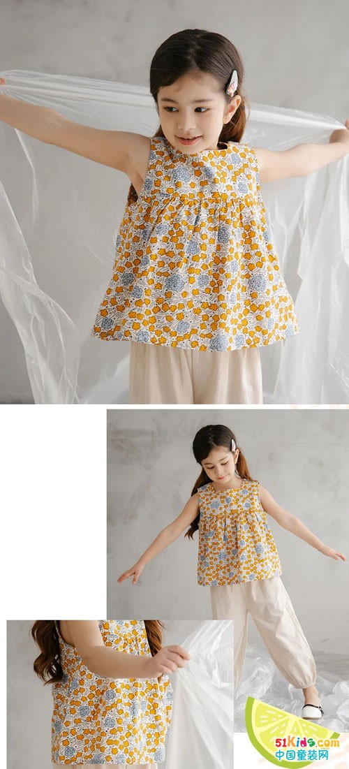 碎花背心加七分灯笼裤,满满的夏威夷风情,让小宝贝随时随地拥有度假般的好心情。