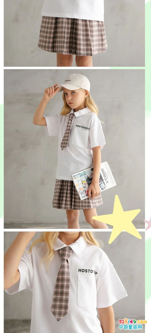 活力十足的JK风套装,简约又不失设计感,每一处都是彰显优秀细节,适合宝贝上学逛街穿搭。