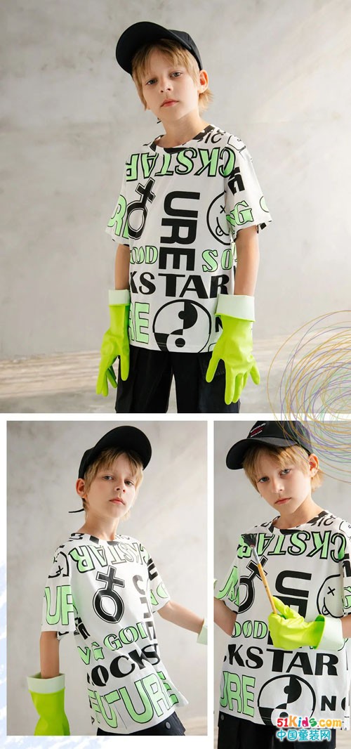 满满艺术涂鸦的T恤,平滑的线条感,多元素碰撞,正如天马行空的想象力,给人不一样的惊喜。